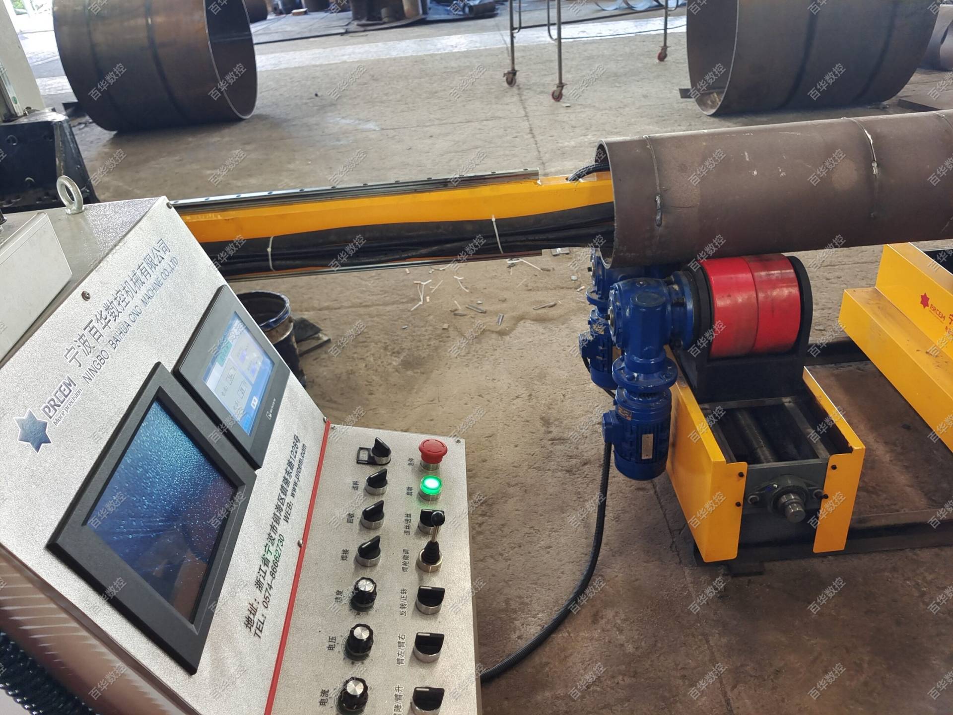 | Basic equipment configuration | Cross-type cantilever welding machine + welding roller beds + ultra-compact submerged arc welding head + submerged arc welding power source + integrated flux feeding and recovery unit + weld vision system + CNC control system |
